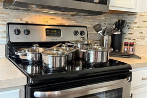 ~ Modern Stainless steel appliances including fridge, stove, oven, microwave, dishwasher